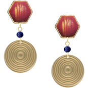 ワインレッドのオクタゴン型ストーンがとても大人っぽいピアスです。天然石ラピスに真鍮のコインチャームを組み合わせた かっこいいデザインになっています♪渦巻き模様は両面(表裏)にあります。真鍮の生地でメッキはしていませんので変色いたします。時間と共に味わい深くなっていきます。